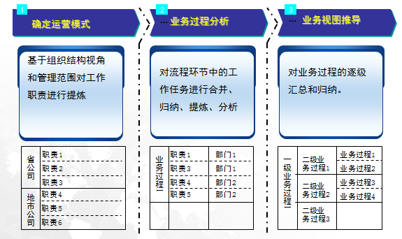 业务过程分析:对流程环节中的工作任务进行合并、归纳、提炼、分析。
